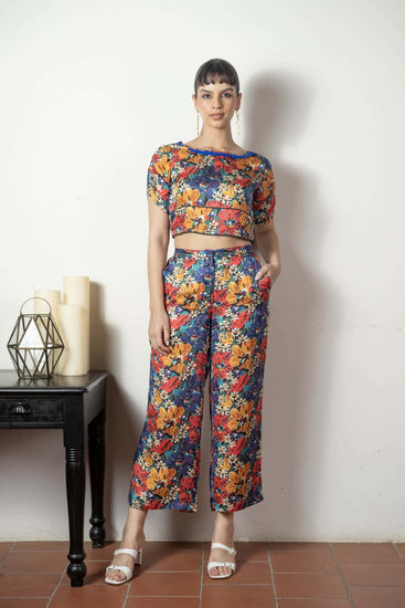 Elysian, a stylish co-ord from the Love Letter collection, features a crop top with intricate laser-cut detailing along the neckline and elegant elbow-length sleeves with gathers. With its versatile design, this co-ord offers endless styling possibilities, making it a versatile addition to your wardrobe.