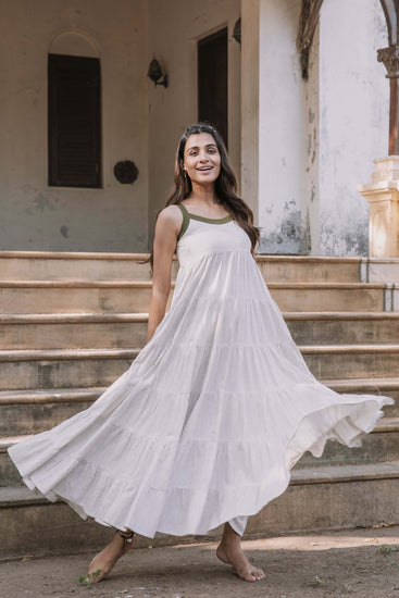 Introducing "Enchanted," a mesmerizing garment with a delightful flare cut in layers and gathers. The addition of a contrasting color strap adds a touch of charm and allure to this captivating ensemble.