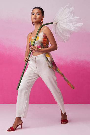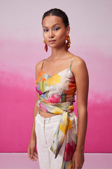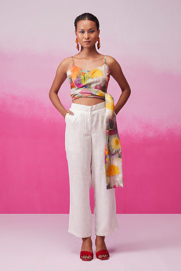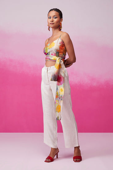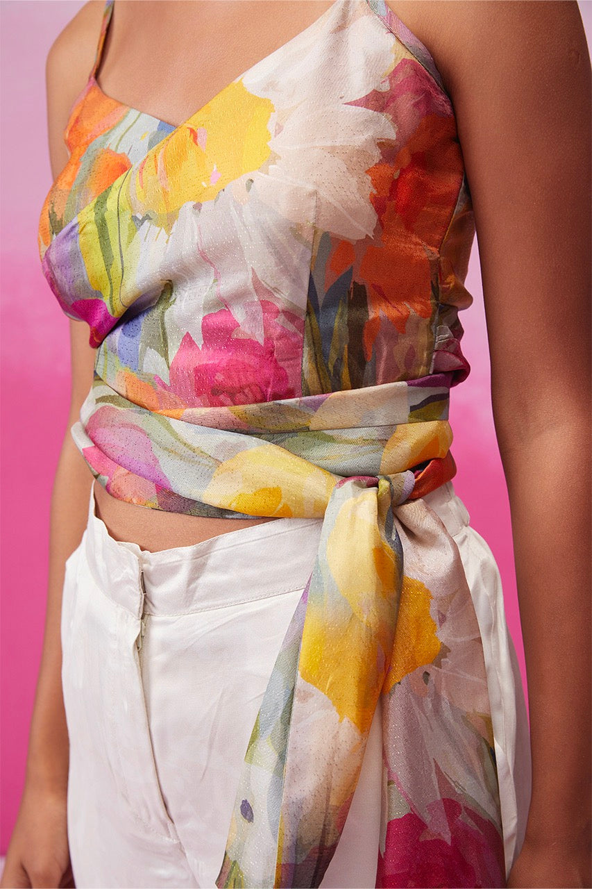 Introducing "Enchanting Sunflower" from Call it Love's Bloom collection. This captivating ensemble features a crop-length top with a unique overlapping pattern and a chic high waist belt for a flattering fit. Paired with neutral tone pants, it radiates elegance and charm, embodying the essence of blooming beauty.