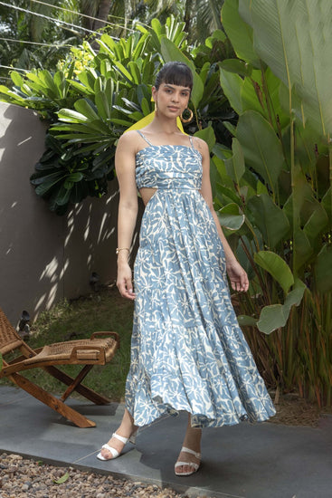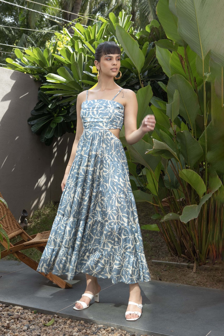 Euphoria graces this ankle-length, strappy dress from the Love Letter collection, featuring a pleated yoke and intricate layers with gathers. With a charming cutout on the back and side of the waist, it's the perfect choice for a beach or destination occasion, offering a blend of style and comfort.