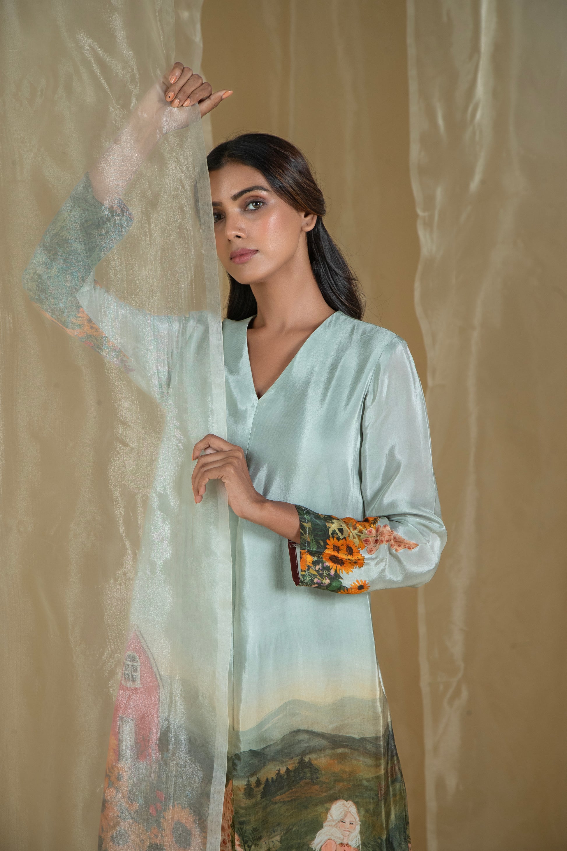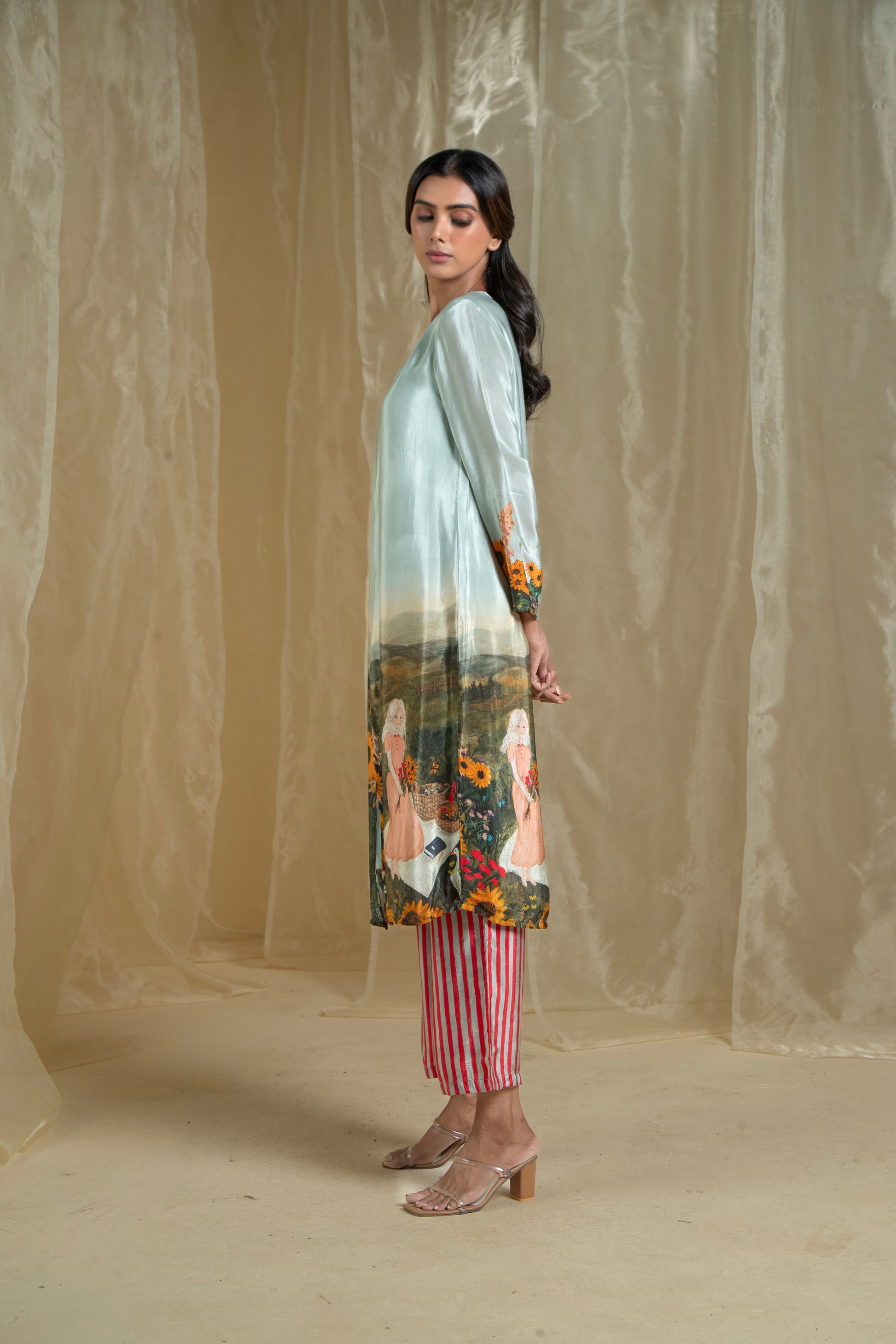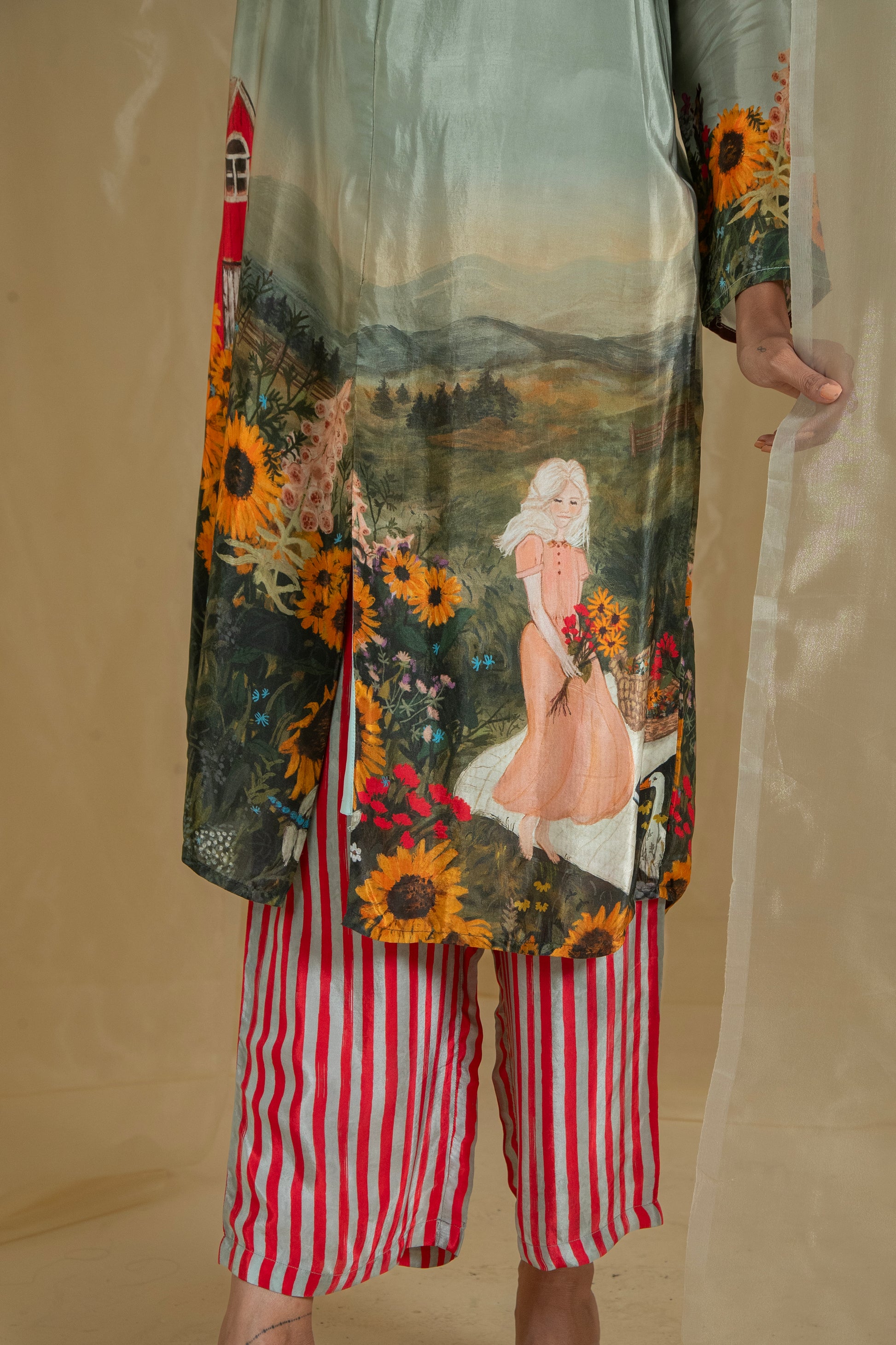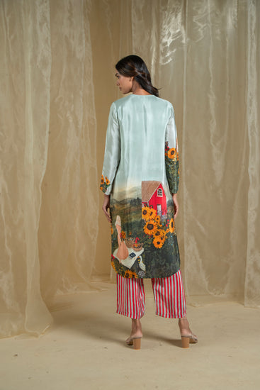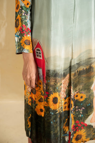 Experience the serene beauty of nature with our Lovescape Countryside Barn Co-Ord Set. Featuring a picturesque print of a charming barn surrounded by sunflower gardens, this design captures the tranquil essence of the countryside. The founder’s favorite, this print is crafted to evoke a sense of calm and connection to nature.
