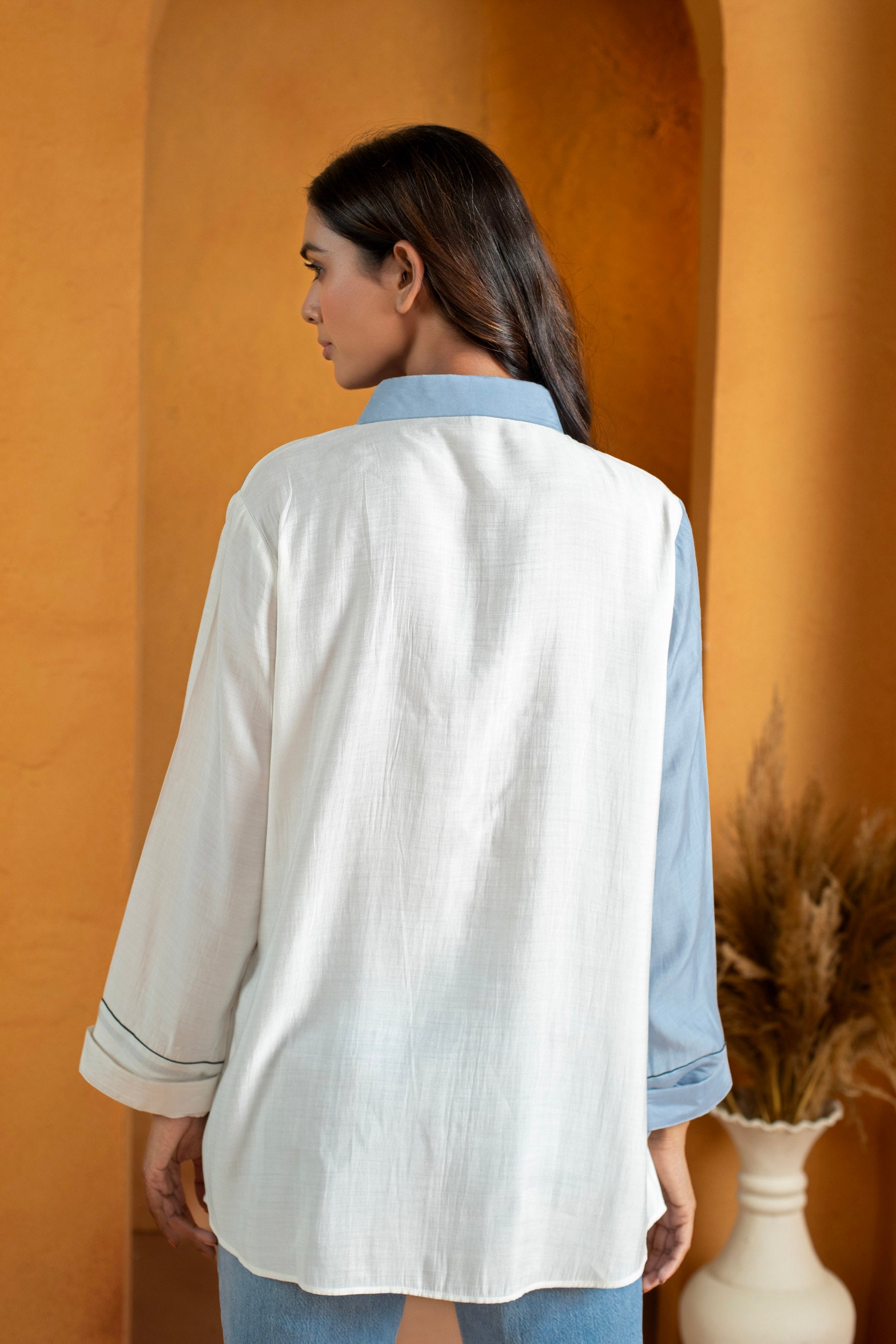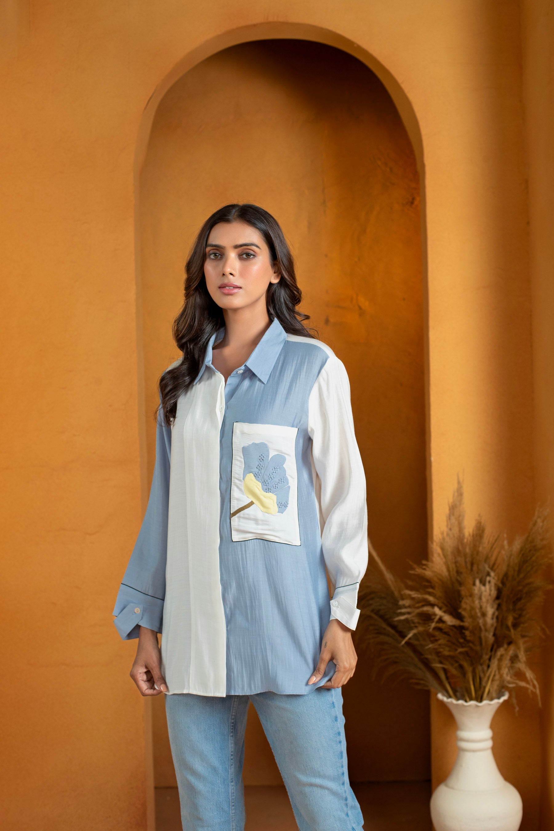 This style is made to keep you sane, makes you feel good instantly. The fresh colors and the lovely applique detail on pocket and a contrast piping all over adds a charm to the entire look.