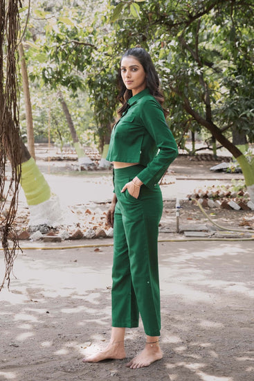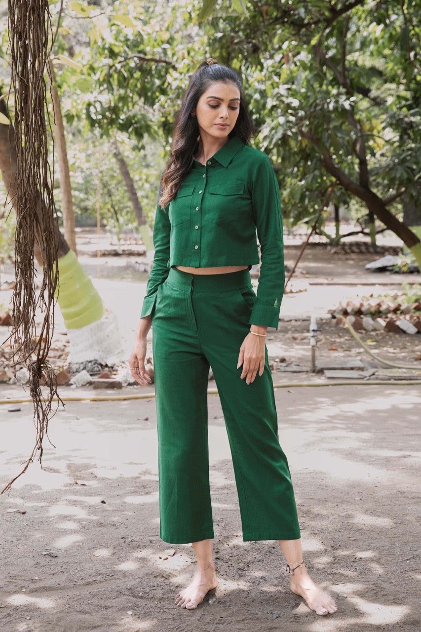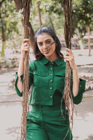 Emerald Green pocket shirt coord set will keep your movie dates and cofee dates sorted.you can also wear a tank top inside and keep the shirt open.Layering will give you that edge.