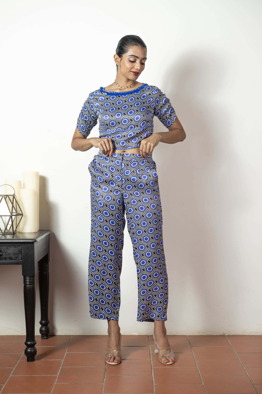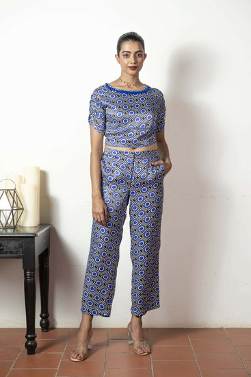 Heartfelt adorns this versatile co-ord set from the Love Letter collection, featuring a pant with a cropped top adorned with intricate laser-cut neckline detailing and elbow sleeves. Whether for a night dinner or a casual date night, this outfit combines eye-catching style with unique charm, easily transitioning from dressed up to dressed down.