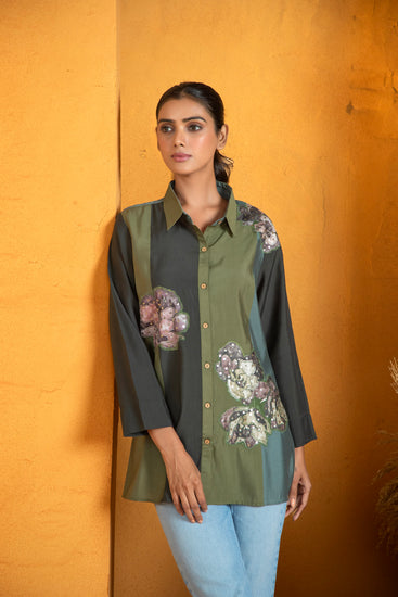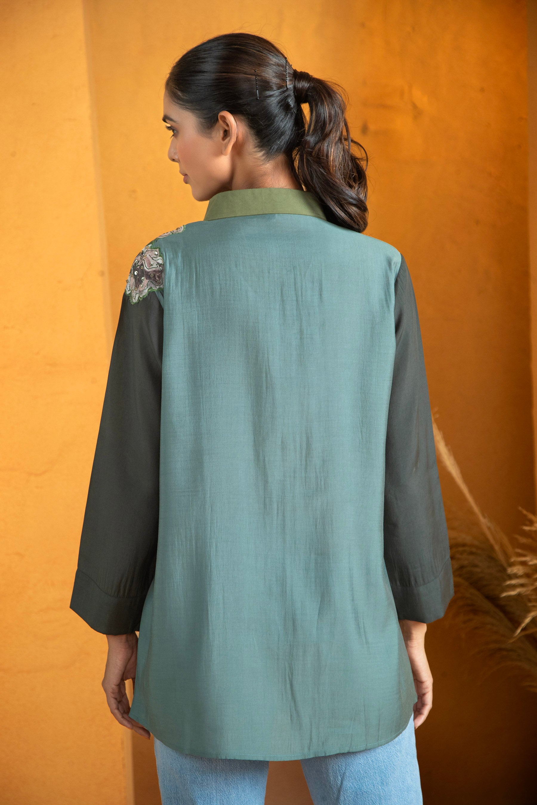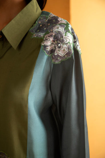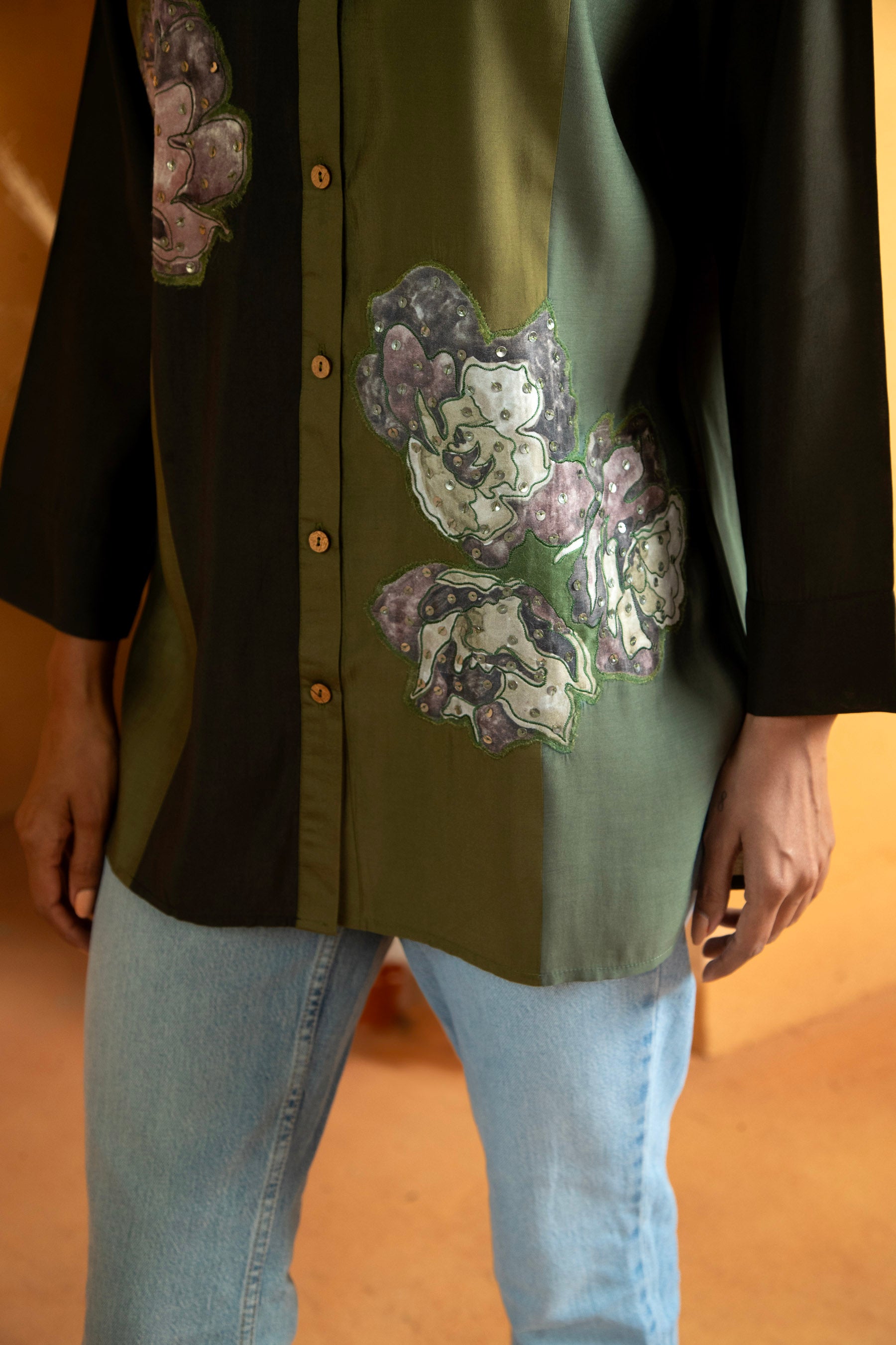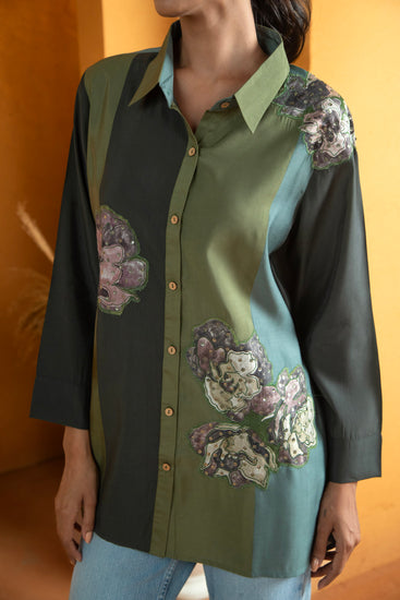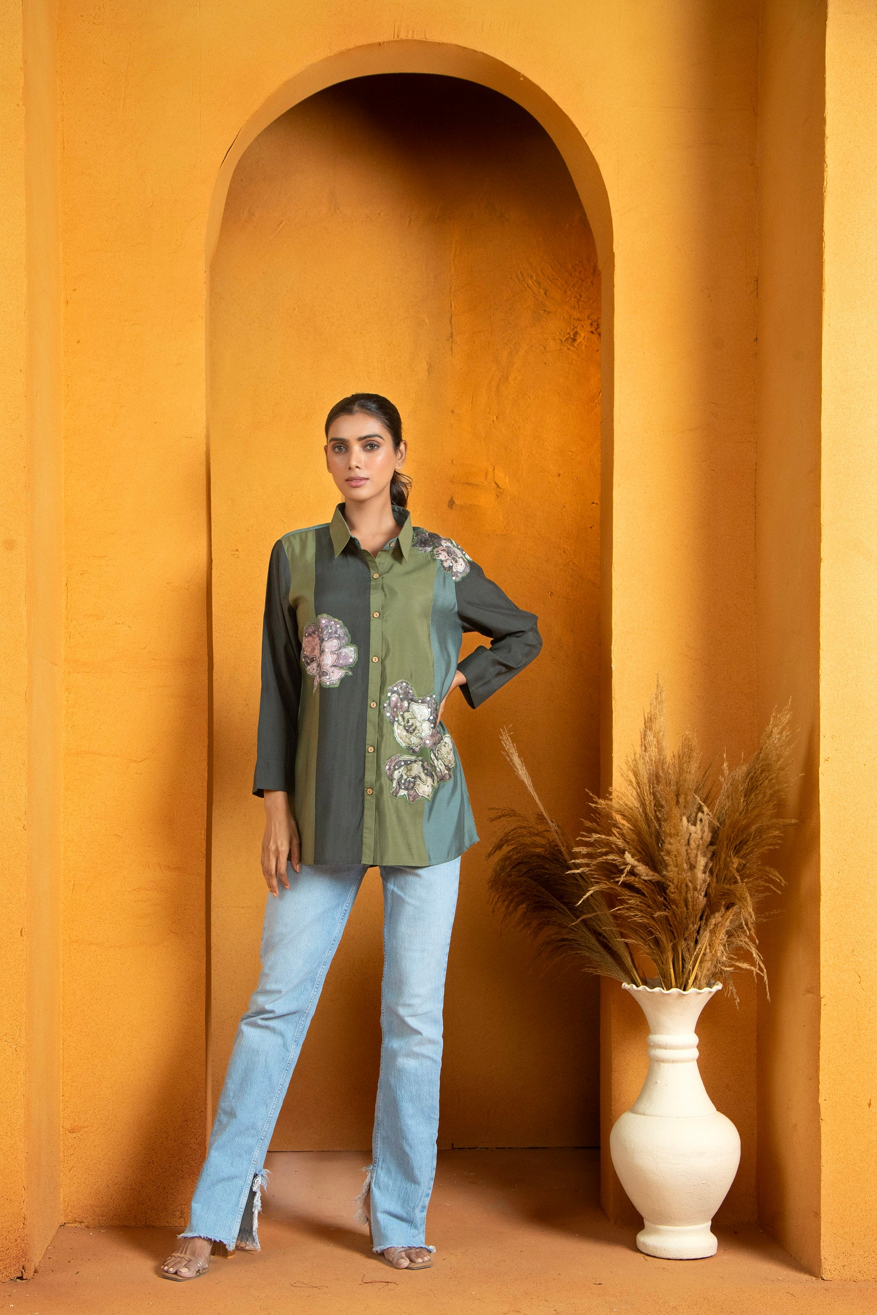 This multi panelled shirt literally brings joy once you wear it. The mix of colors, the printed patch with hand detailings, gives you a mood lift on an instant. Who doesn’t love colors?