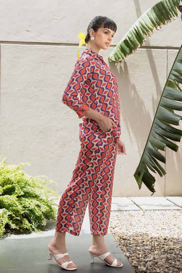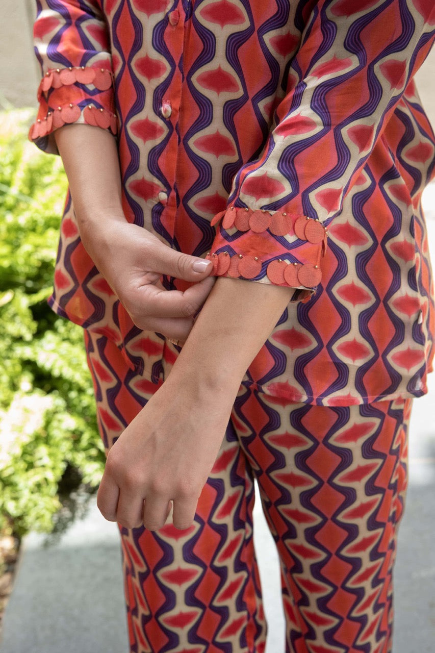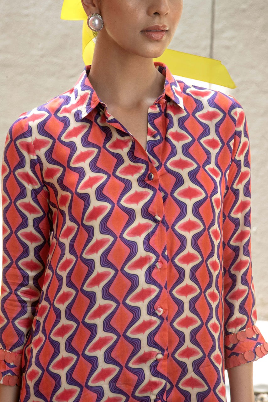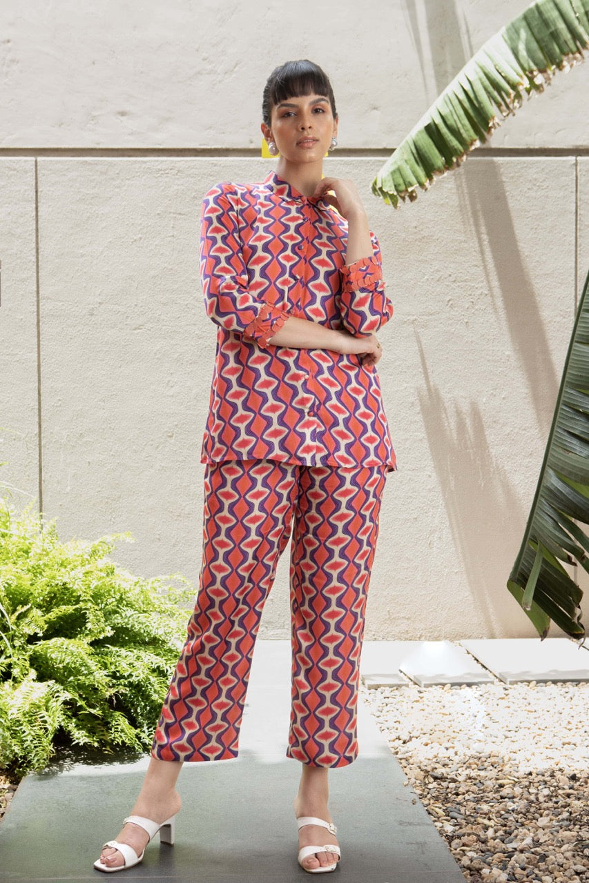 Melodic, a versatile co-ord set from the Love Letter collection, features an invigorating and lively print that exudes vibrancy and freshness. With laser-cut detailing on the cuff of the shirt, this ensemble offers limitless styling possibilities, making it a delightful addition to your wardrobe.