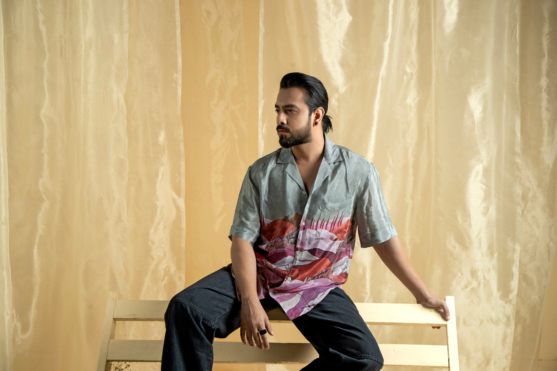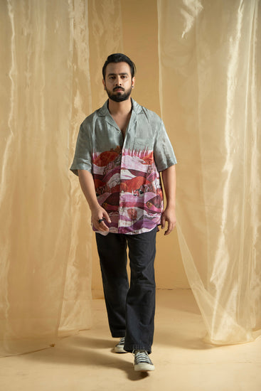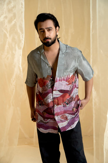 Crafted from pure crepe, this shirt offers both comfort and style, making it ideal for special events or everyday wear. Its timeless print and elegant finish make it a standout piece, perfect for those who appreciate artistry and refined fashion.