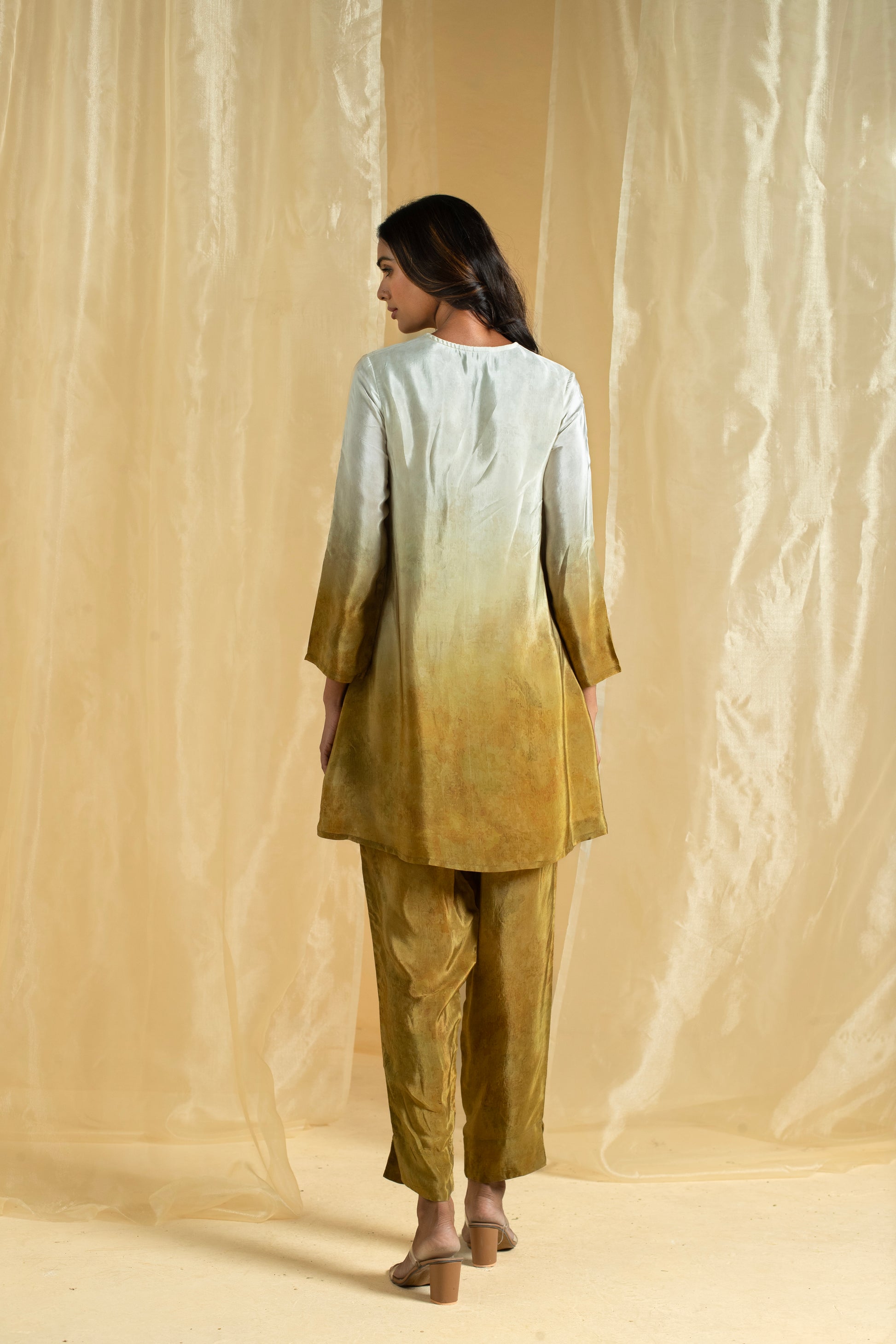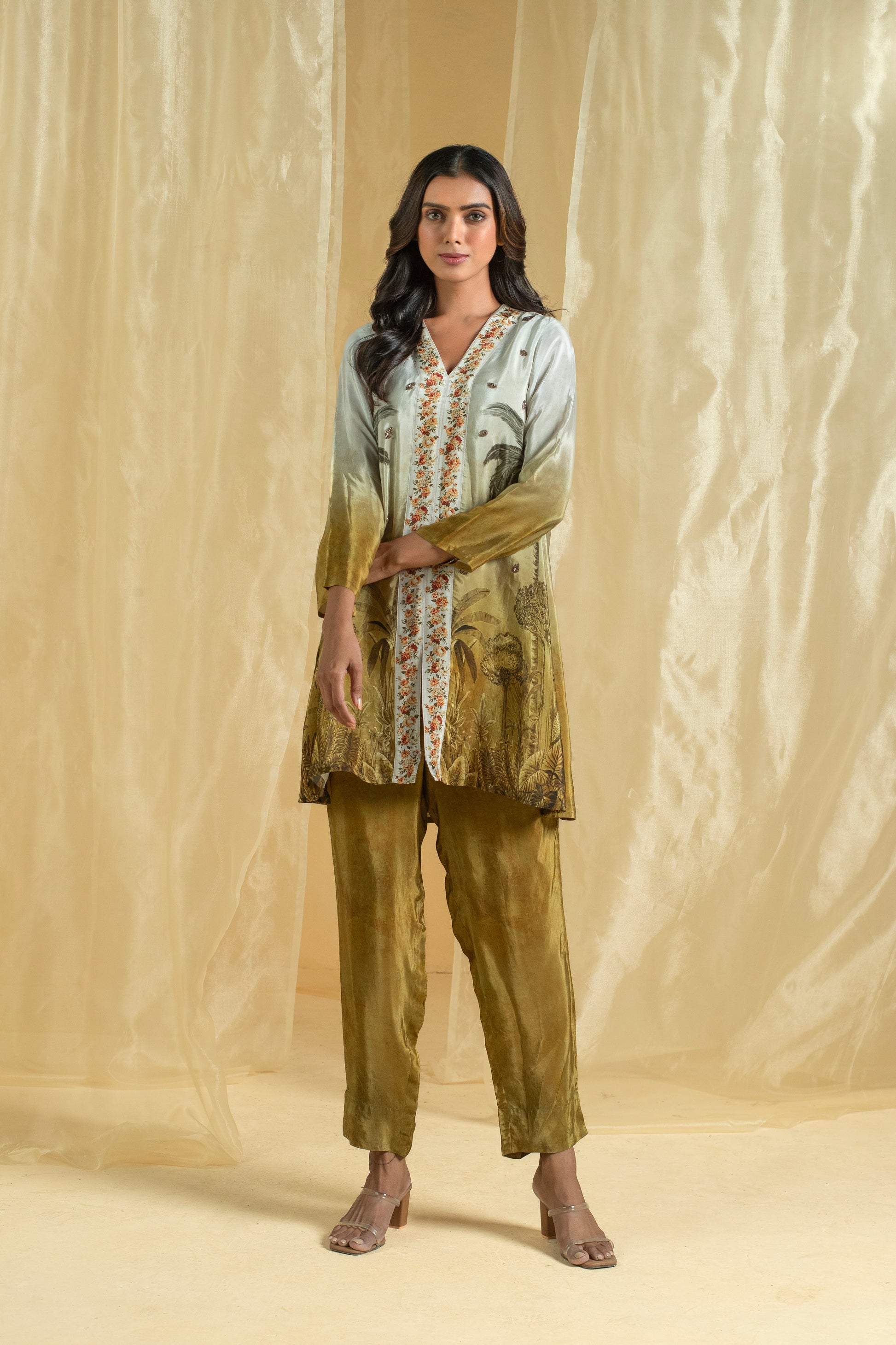 Paired with textured yellow print pants, this set is a complete package for daywear—perfect for brunch, shopping, or a special event. Crafted from pure crepe, it offers a comfortable and breathable fit, making it ideal for all-day wear. This co-ord set, made with love, is a versatile addition to your wardrobe, designed to make you look effortlessly chic and stylish.