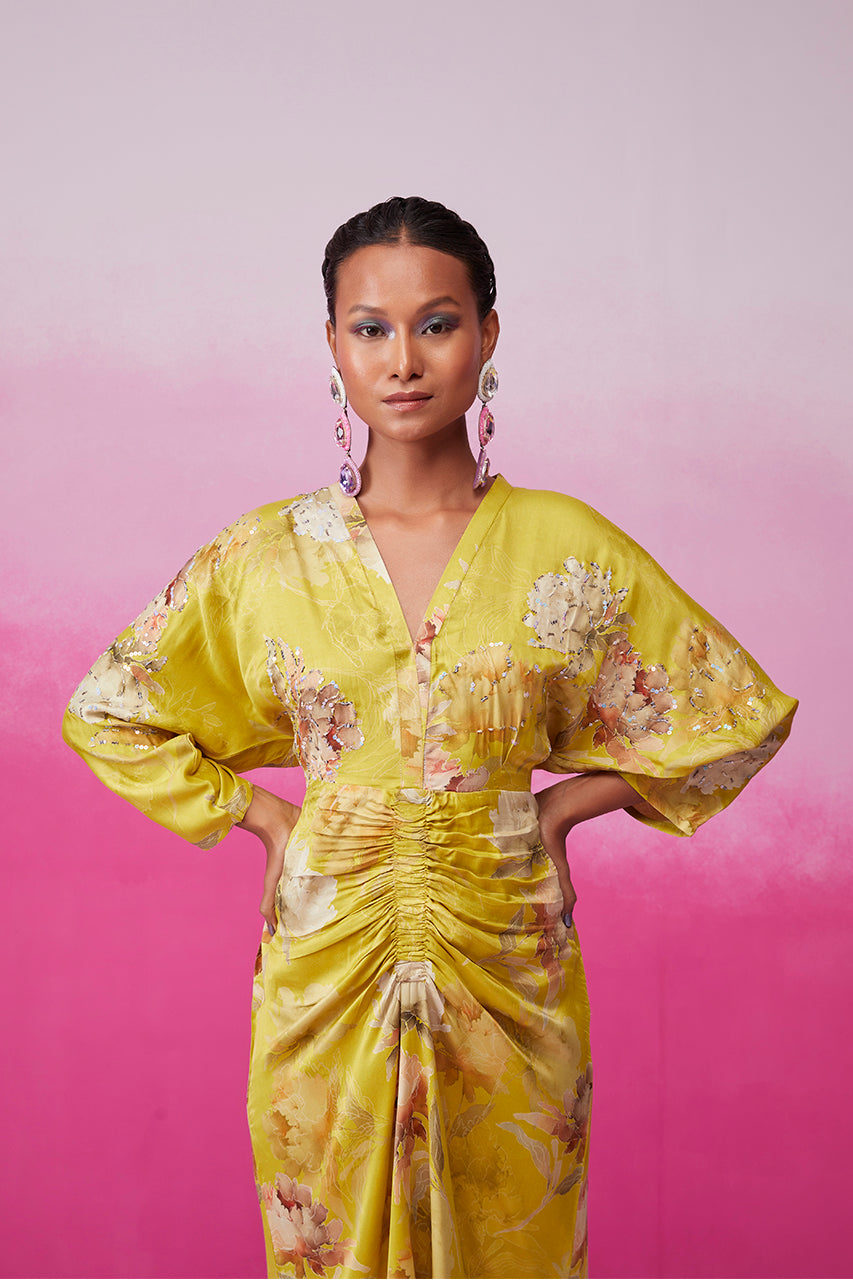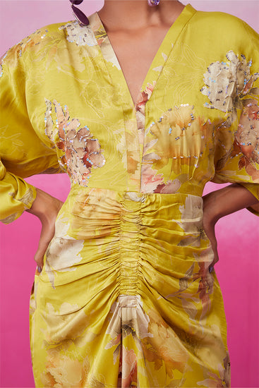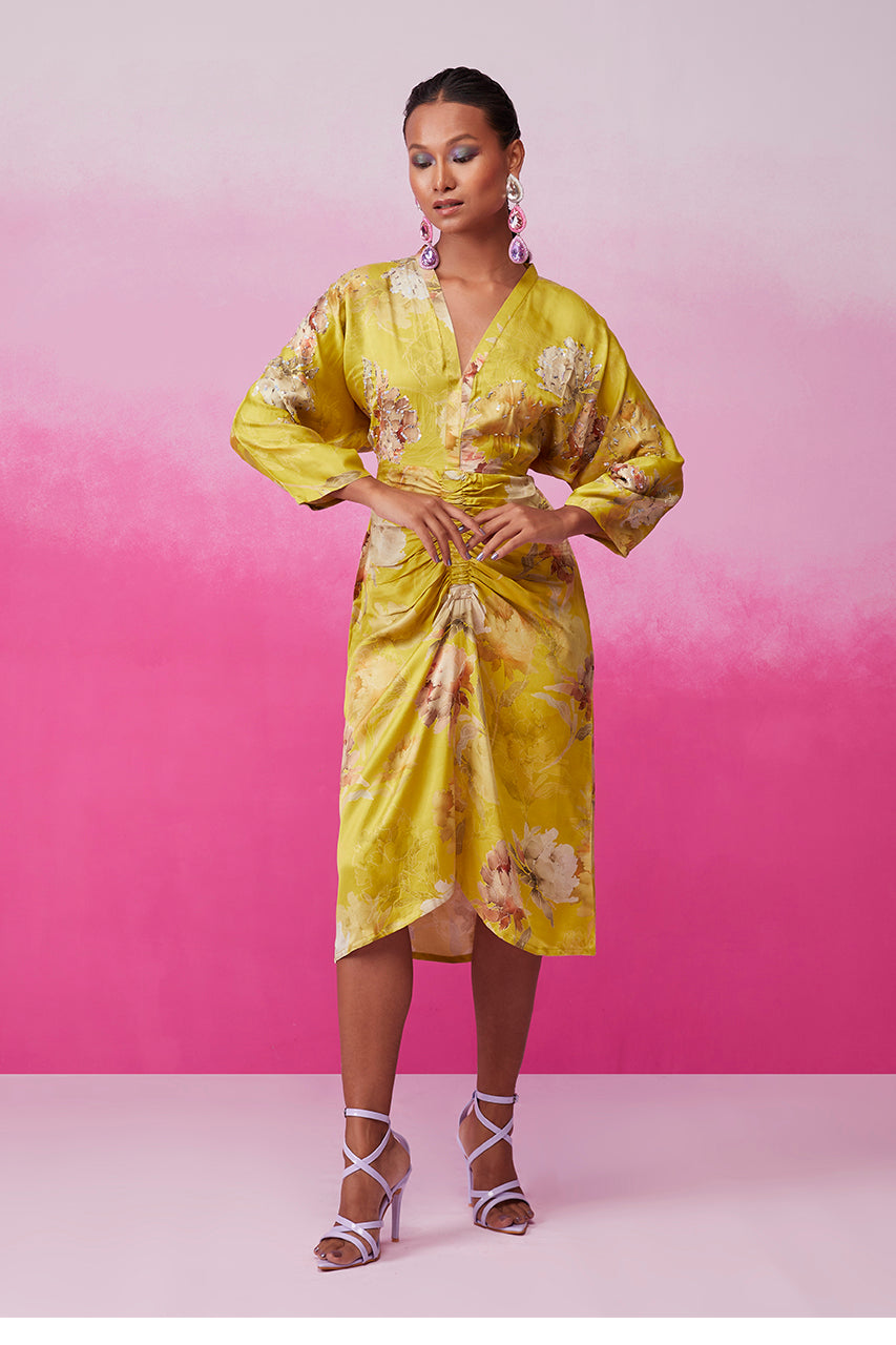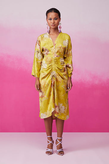 Introducing "Sunshine Sway," a radiant dress by Call it Love. Embrace the allure of the anti-fit style with a loose upper body featuring a chic V-neck, while gathers at the center sculpt a flattering hip line. The vibrant lime color adds a captivating touch, making this dress a perfect blend of comfort and allure.