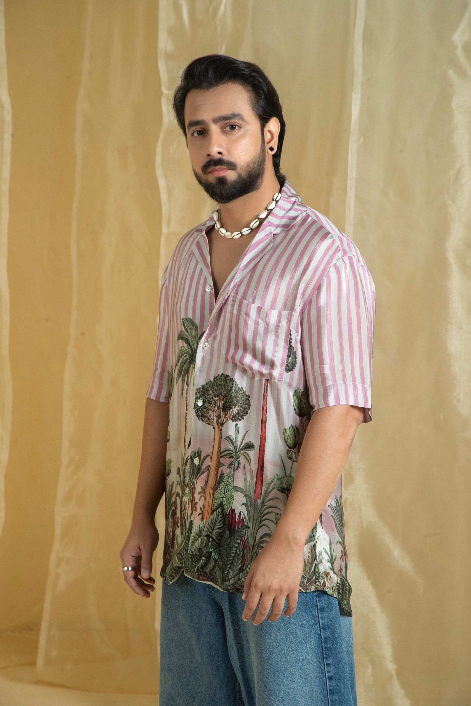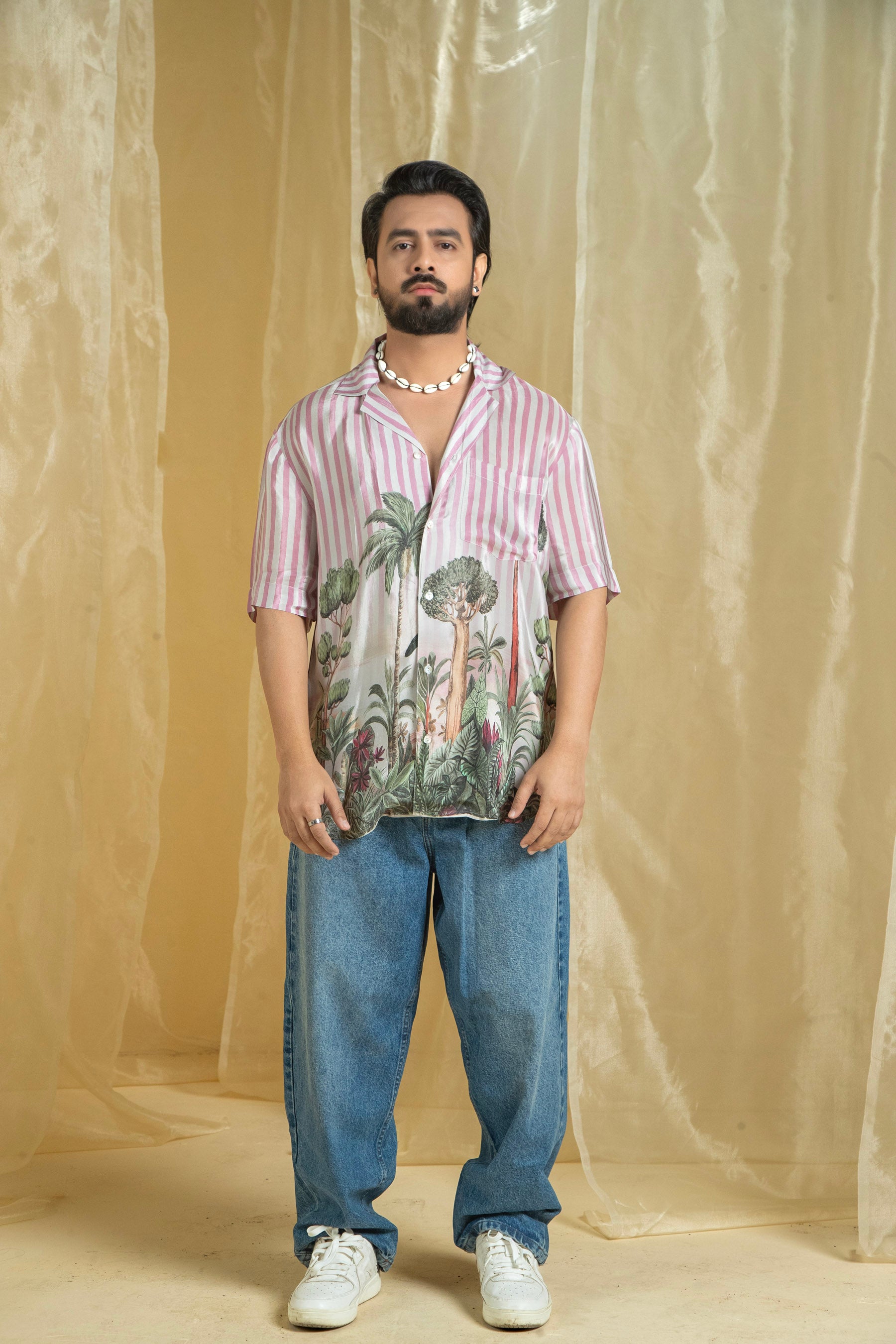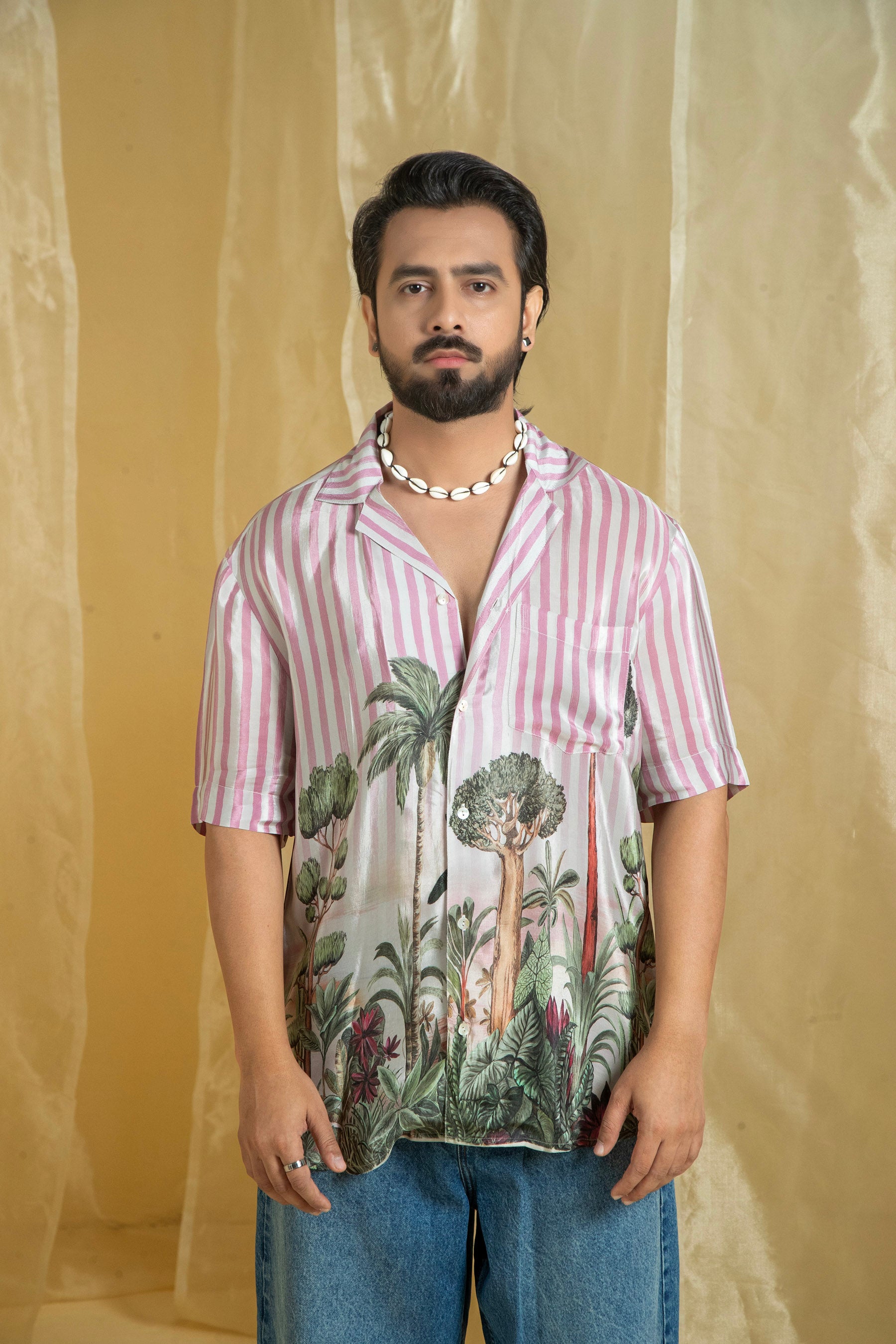 Crafted from pure crepe, this shirt offers both comfort and style, making it ideal for special events or everyday wear. Its timeless print and elegant finish make it a standout piece, perfect for those who appreciate artistry and refined fashion.